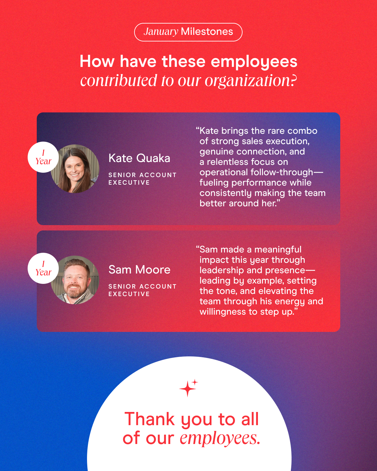 “Kate brings the rare combo of strong sales execution, genuine connection, and a relentless focus on operational follow-through—fueling performance while consistently making the team better around her.”