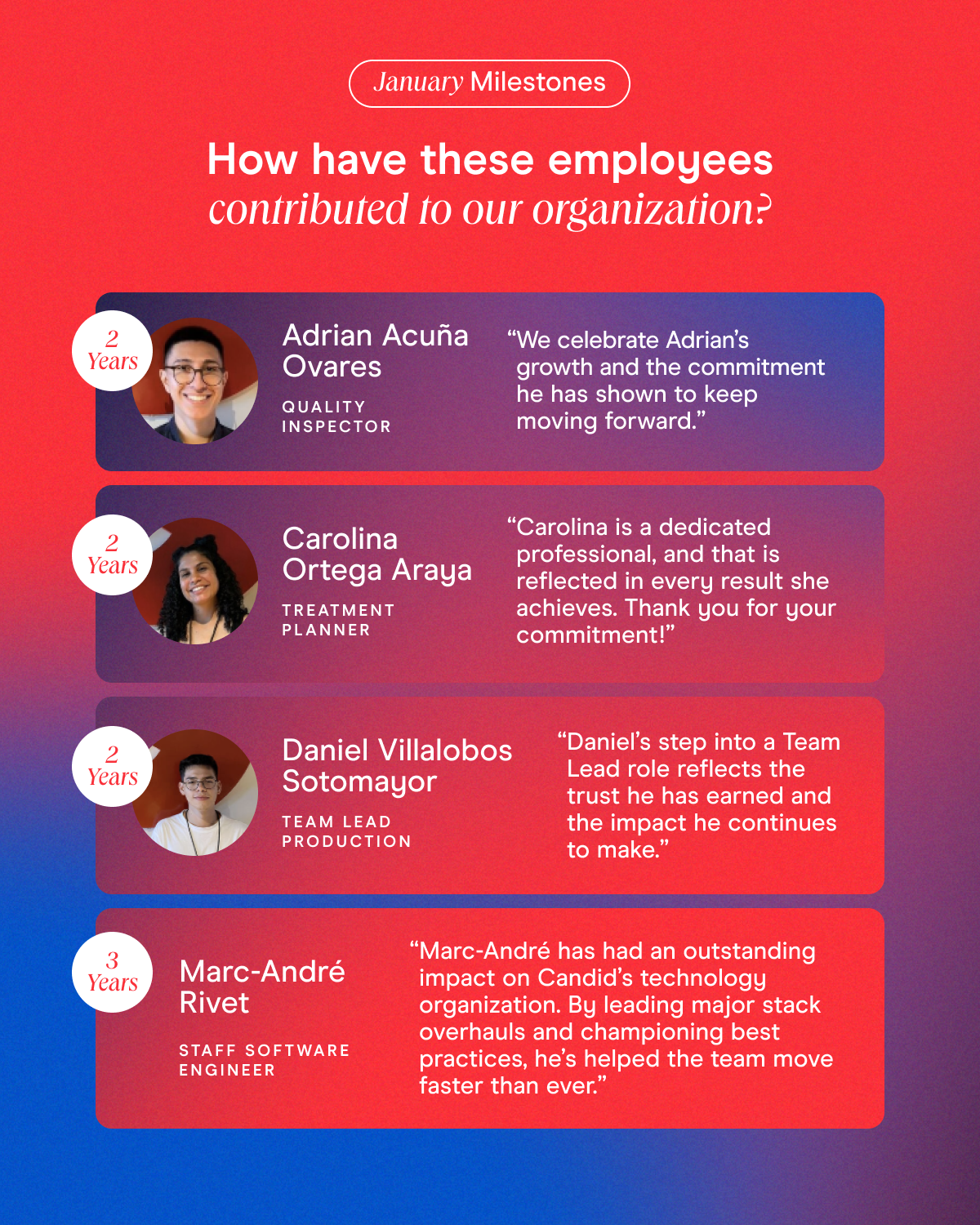 From leading with empathy to raising the bar for excellence, these teammates help shape our culture and strengthen the way we serve our CandidPro providers every single day. We’re grateful for their dedication and proud to celebrate the impact they continue to make.